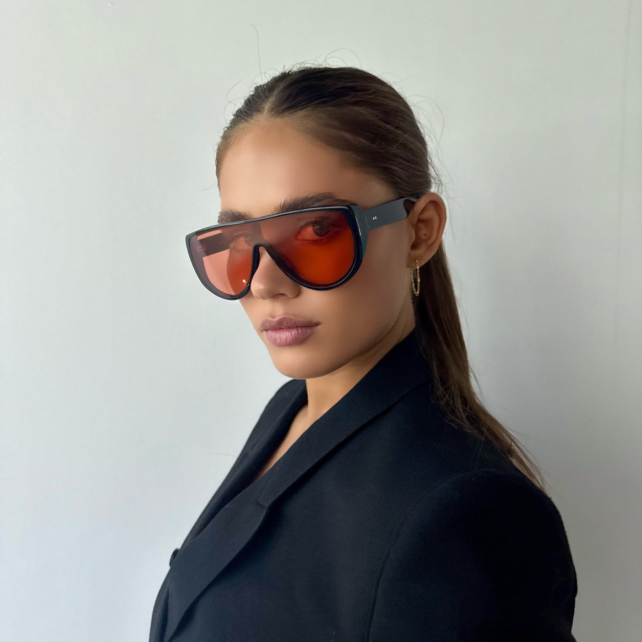 INDI is an oversized shield silhouette crafted for maximum impact. Sleek, sculptural and unapologetically bold, INDI wraps the face with a single continuous lens for a modern, directional look.