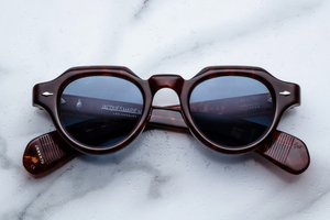 Material: Havana 10mm cellulose acetate frame custom acetate temples featuring precious metal hardware.