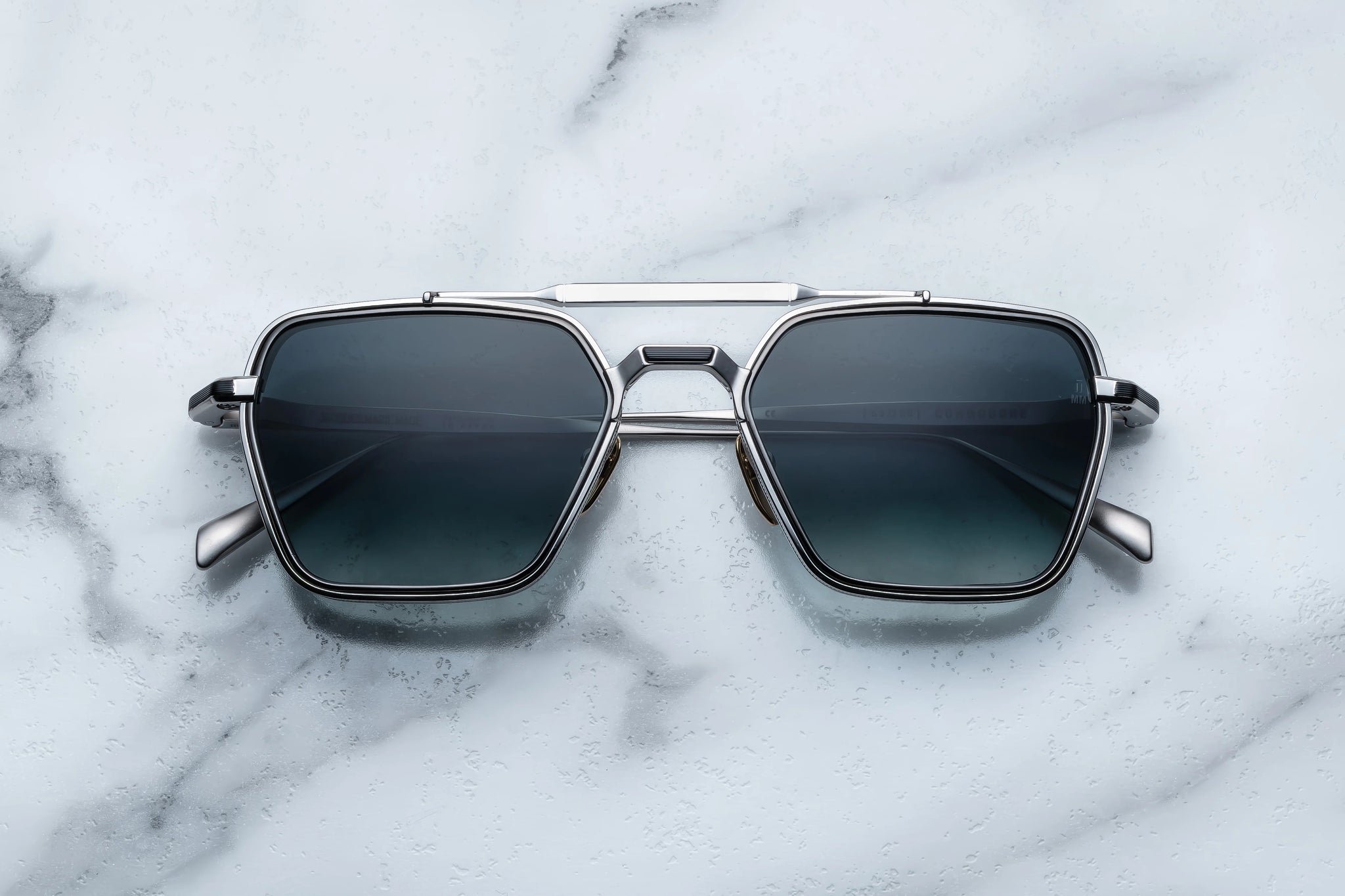 - Silver hairline engraved titanium temples with wing tips
