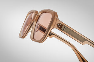 Material: Brown 8mm cured cellulose acetate frame with custom double laminated acetate temples