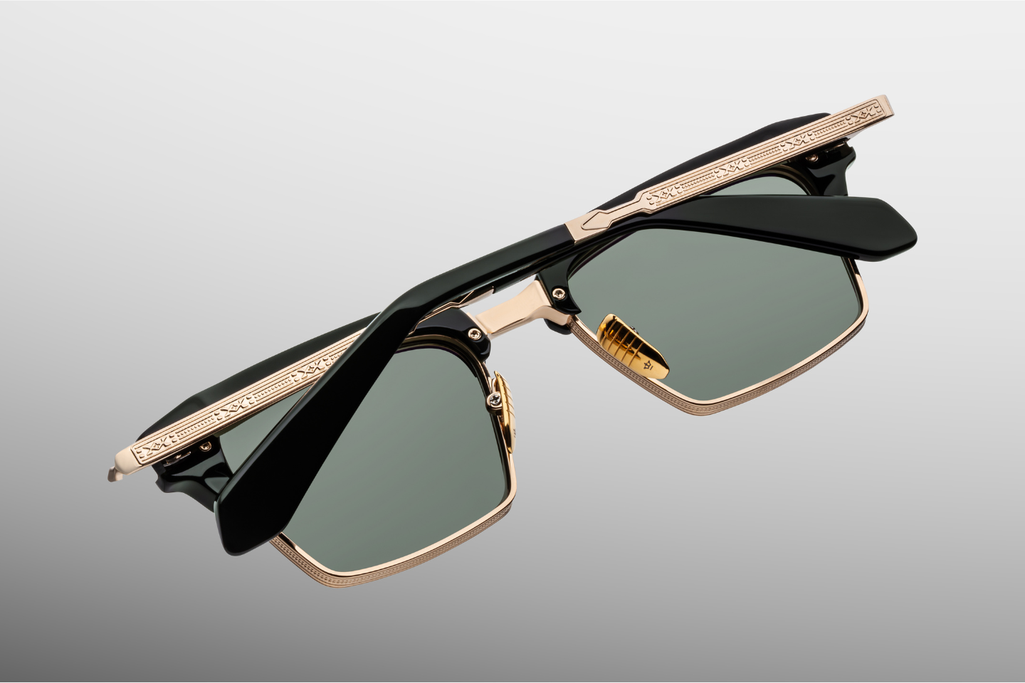 - Dark Gold engraved titanium temples with acetate tips
