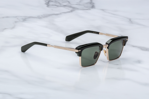 Material: Dark Gold 100% Beta Titanium with Sterling Silver Accents, Black Cured Cellulose Acetate