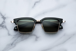 A serious and sophisticated spectacle of the highest caliber, these classic ‘50s-inspired spectacles are a stoic combination of craft and ambition, featuring a prominent acetate brow with a sleek titanium lens rim, and finely engraved temples with a unique arrowhead transition.